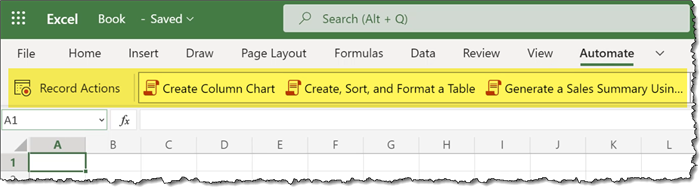 I can go to any other Excel file and run this script from the Automate ribbon.