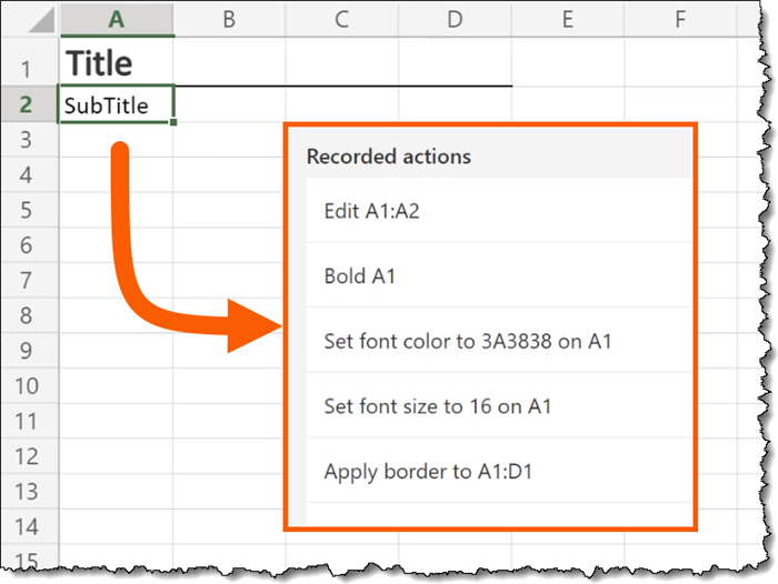 The “Record Actions” feature isn’t as sensitive as the VBA Recorder; some actions are not recorded using this tool. Admittedly, the VBA Recorder doesn’t catch every action either, but it is a bit more robust than the “Record Actions” feature.