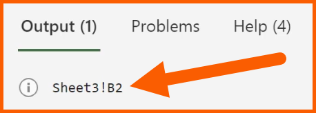 let MyAddress = selectedSheet.getCell(1,1).getAddress()We will display the results using the Console Log feature. This will display the results on the screen in the Code Editor panel.