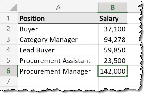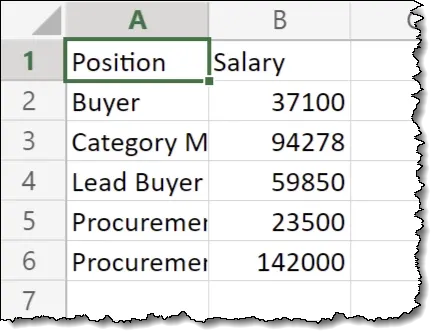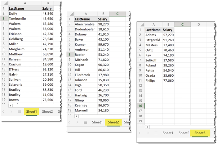 Alongside this file in the same folder is a file named “Salaries.xlsx” that has several sheets with data like the following.