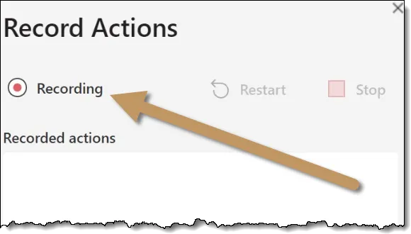 You can see in the Record Actions panel (right) that the recording has started.