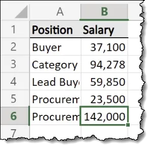 The next step is to apply a formatting style to the “B” column that places commas every 3 place values and shows whole numbers only.