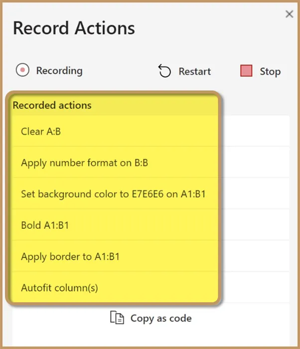Our current code is pointing to “selectedSheet” for each recorded action.