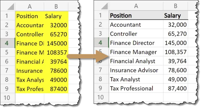 The first thing our macro should do is to remove any existing formatting from the data.