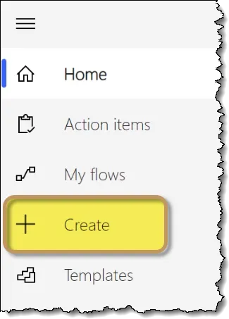 In Power Automate, click the Create option (left panel) to begin the creation process.