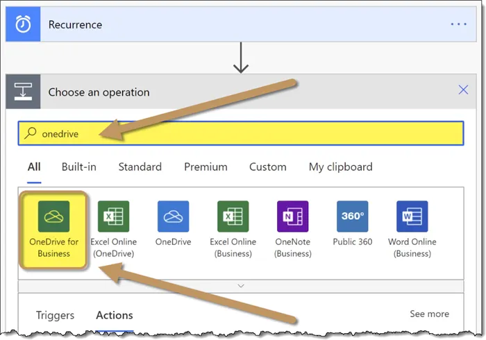 We’ll select the operation labeled “OneDrive for Business”.