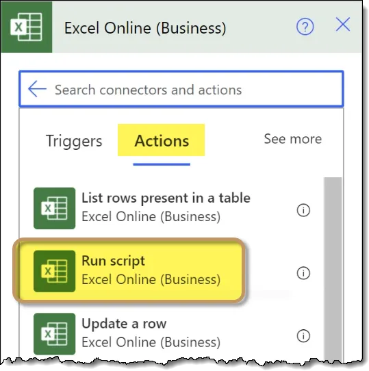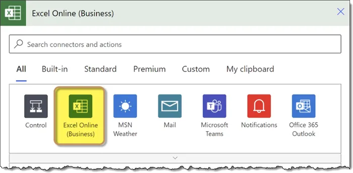 We’ll select the connector labeled “Excel Online (Business)”.