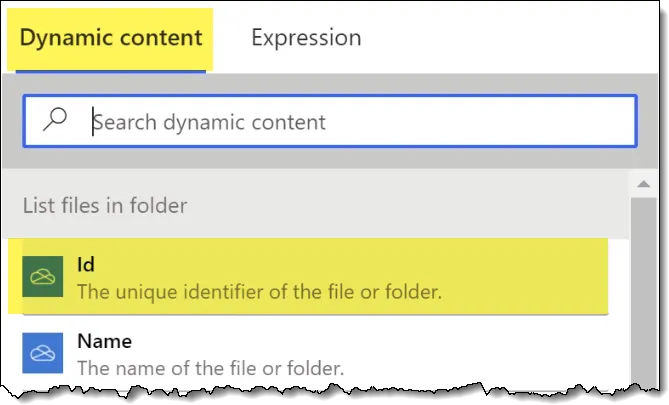 NOTE: For the File argument, select the Dynamic Content category and click the “Id” option.
