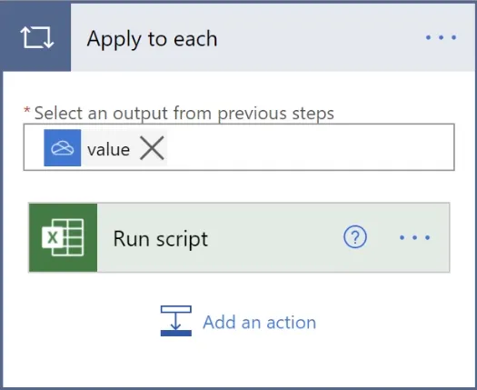 This will create a new control named Apply to Each that will nest the Run Script step within it.