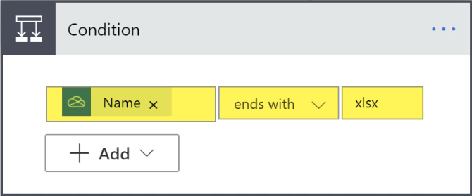 Our Condition will be to check to see if the file’s name ends with .XLSX.