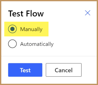 We will test the flow Manually and click Test at the bottom of the screen.