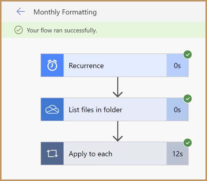 We want to create a Power Automate script that will open the desired files and loop through each sheet applying the desired formatting.