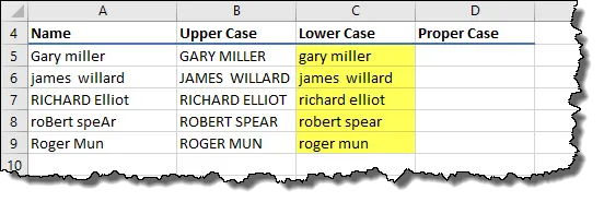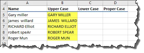 We will create a version of each name in the list to upper case, lower case, and proper case using formulas. Each of these methods are incredibly simple.