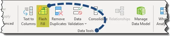 Another way to activate the Flash Fill tool is to select Data (tab) -> Data Tools (group) -> Flash Fill.
