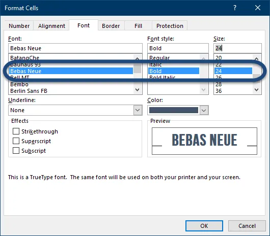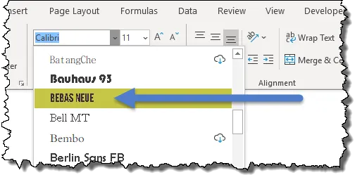 When you download and install the font based on the website’s installation instructions, the font will be available to all your Windows and Office applications, not just Excel.