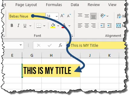With the font installed, we return to Excel and select a cell where we will enter our title.