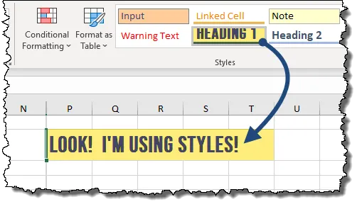 We can now select a cell and type in our new title. Once entered, with the title cell selected, click the Heading 1 style from the Cell Styles list.