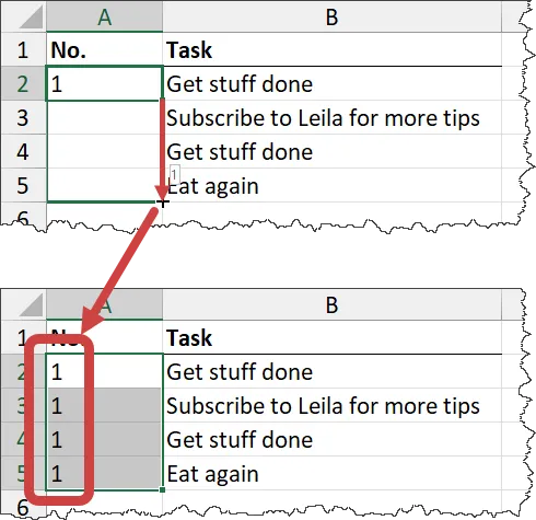 When we try to number rows in Excel using the Fill Series handle, Excel doesn’t understand why we are filling it down. It assumes we wish to copy the value from the first cell.