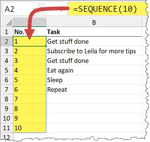 Use the Excel SEQUENCE Function to Generate Numbered Lists