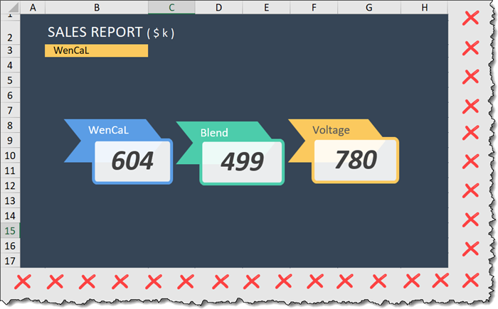 A great way to make your dashboards and reports stand out from typical offerings is to “disconnect yourself from the grid”. What this means is to not be restricted to the height and width dimensions of rows, columns, and cells.