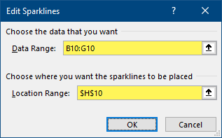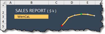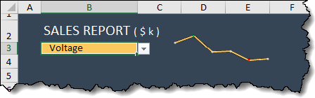 =XLOOKUP(Dashboard!B3, A5:A7, A5:G7)Step 3: Build the Line Chart Using Sparklines