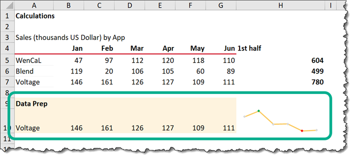If we select a different App from the App list, the Sparkline on the data-prep sheet changes which is then relayed to the dashboard sheet.