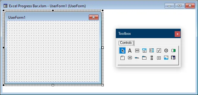 This presents us with a blank, generic UserForm which acts as a canvas for our imagination’s unlimited creativity.