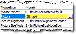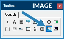 - Using the Toolbox Image feature, insert an image placeholder. Set the Picture property to the location of your image. The ellipse button to the right of the property will allow you to browse out to your image file.