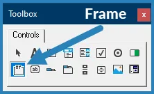 Instead of inserting a Frame object and changing the Caption property, we will add a Text object and change the Caption property.