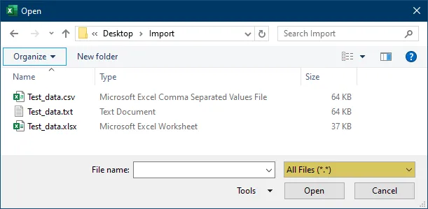 To test, run the macro to watch as Excel presents us with the Open dialog box.