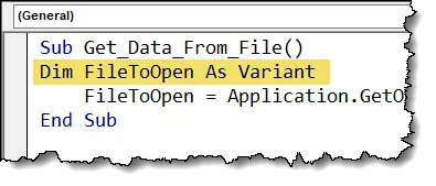 Dim FileToOpen as VariantDim FileToOpen as Variant