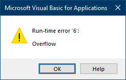 When using data types, it’s important to anticipate the largest value you may wish to retain. If you were to store page numbers in a variable declared with a Byte data type, and then tried to store a reference to page 300, you would encounter an overflow error as demonstrated in the following error message.