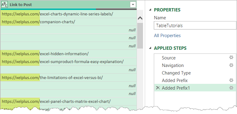 You have to click inside every cell and press Enter to make the URL clickable. Not something you want to do for over 400 tutorials (with more to come). We need to find a way around this problem. Let’s turn again to Power Query.