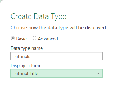 Next, select the Display column – the “face” of your data type. Use a unique and descriptive column that will tell you at a glance what the record is about – in this case, Tutorial Title makes most sense.