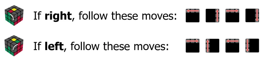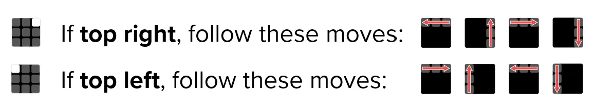 - Repeat the moves exactly 2 or 4 times until the corner matches its side colors.