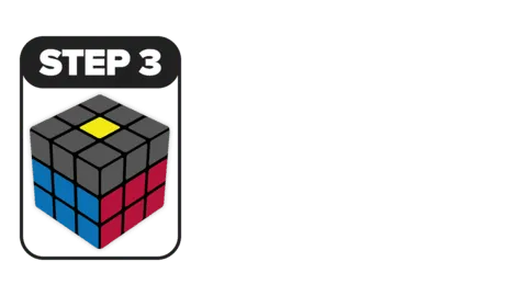 - Example: If the white edge has blue as its second color, rotate the top layer until it’s above the blue face.