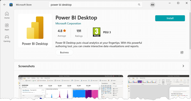 - Go to the Microsoft Store and search for “Power BI Desktop”.
