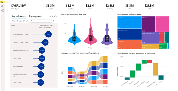 - You can create tables, charts, graphs, slicers, KPIs, cards, buttons, logos, icons, and more.