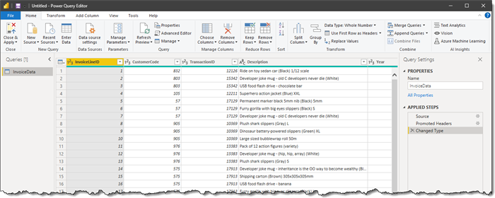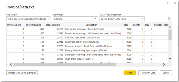 - Get Data: Click “Get Data” and browse to “InvoiceData.txt”.