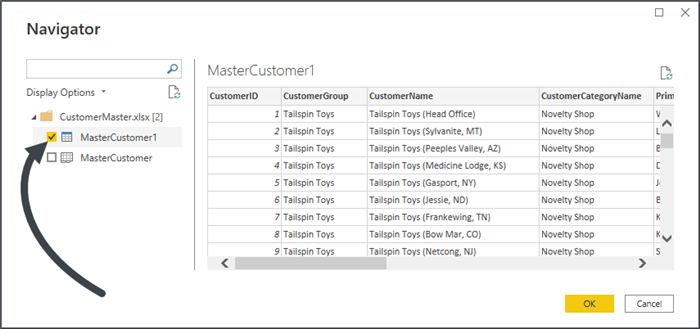- Excel Workbook: “CustomerMaster.xlsx” with a table named “MasterCustomer” containing customer information.