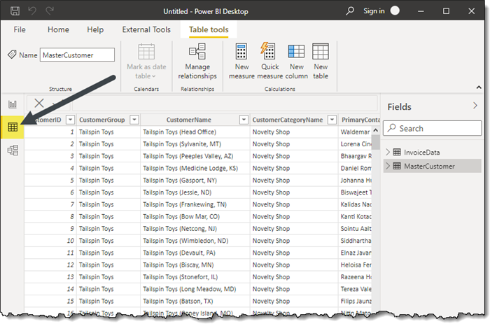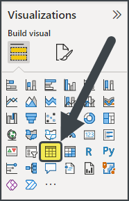 - Click Table in the Visualizations pane to add a table visual to your report.