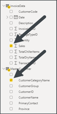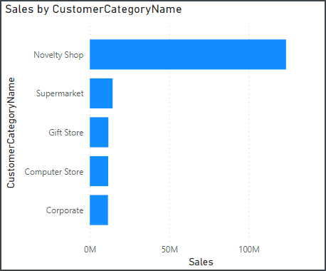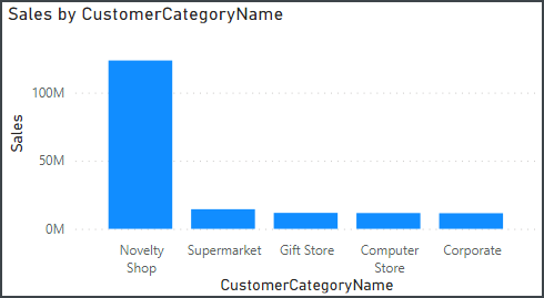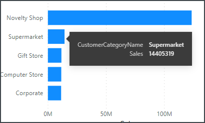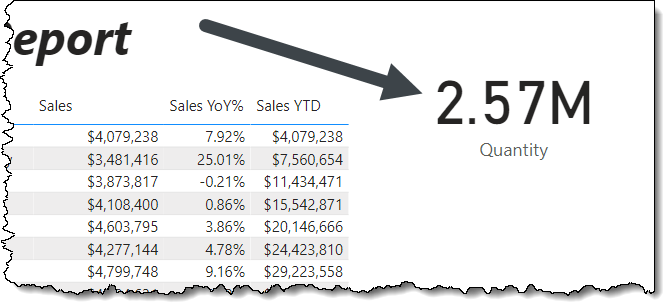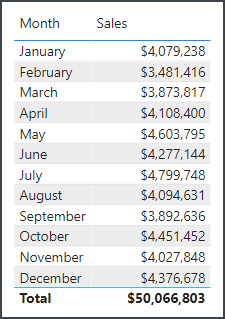 - Power BI will automatically summarize the sales values, similar to an Excel Pivot Table.