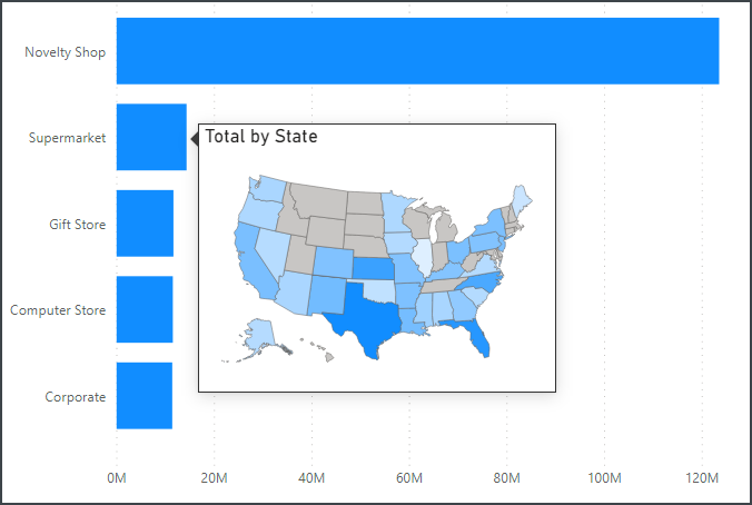- Tooltips can even display mini charts filtered by the data point you hover over.