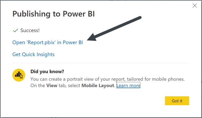 - Once the upload is complete, you’ll receive a notification that the report has been successfully published.