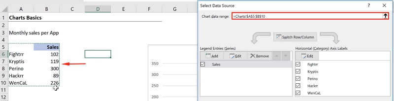 - Select Data Source: In the “Select Data Source” dialog box, click the “Switch Row/Column” button.