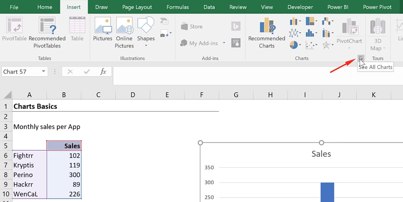 - Use Keyboard Shortcut: Press Alt + F1 to insert a chart based on the default chart type.