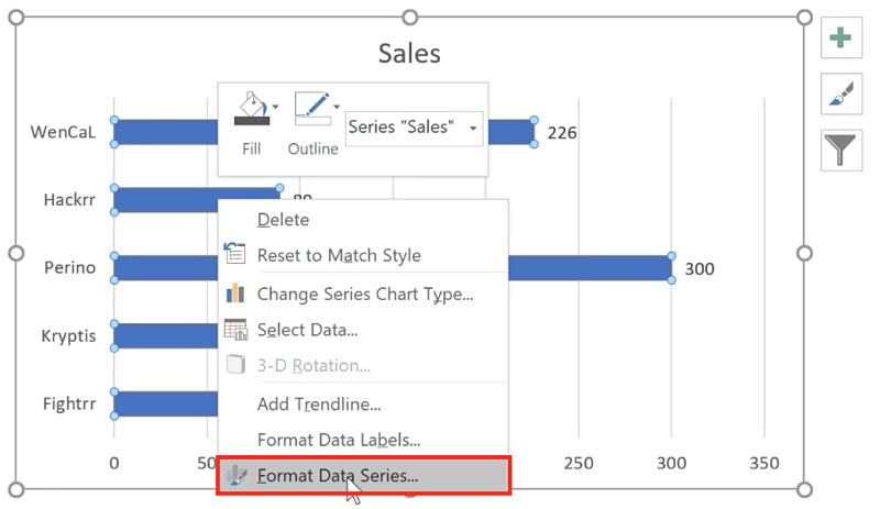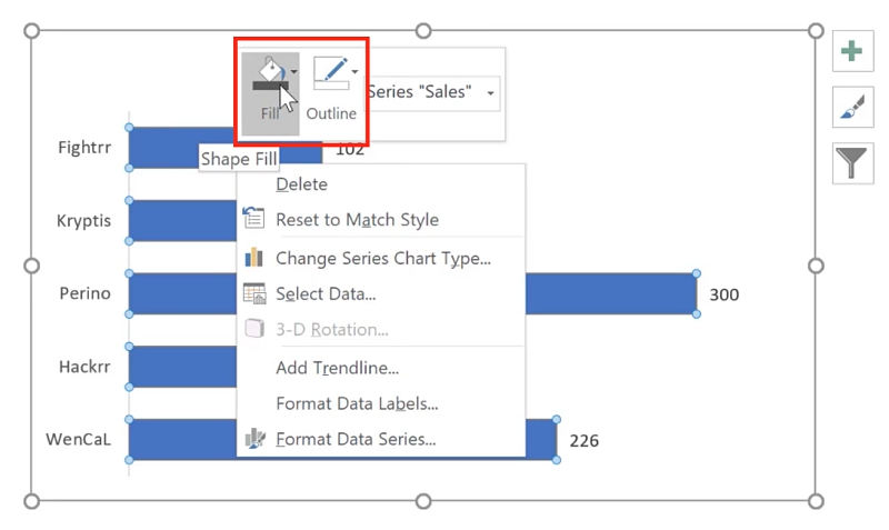 - Adjust Formatting: Ensure the series is properly formatted (e.g., fill color).