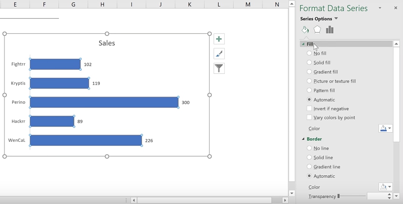 In this section, we will format a bar graph. While some options are specific to certain chart types, most formatting elements are common across different charts.