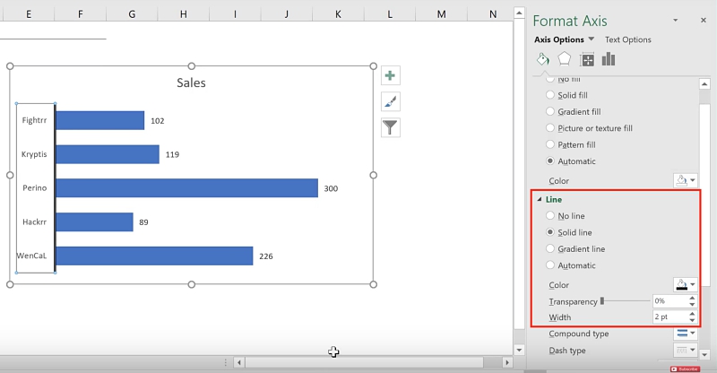 - To remove the line, go to the Format Data Series pane and select “No Line” under Series Line Options.