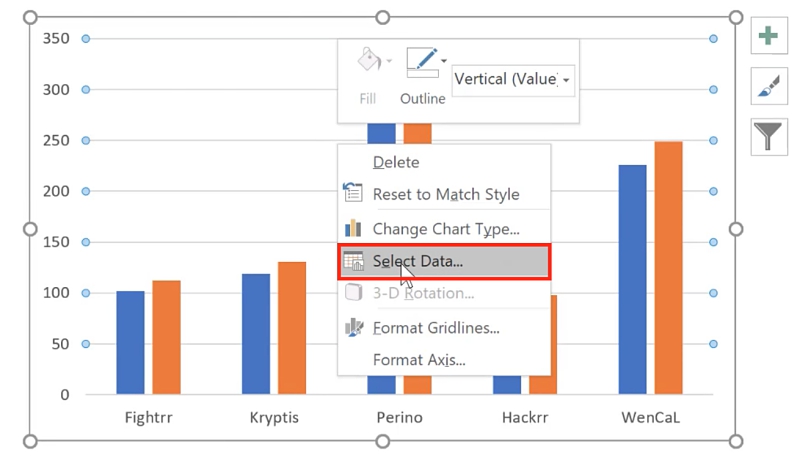 - Right-Click on the Chart: Select “Select Data” from the context menu.